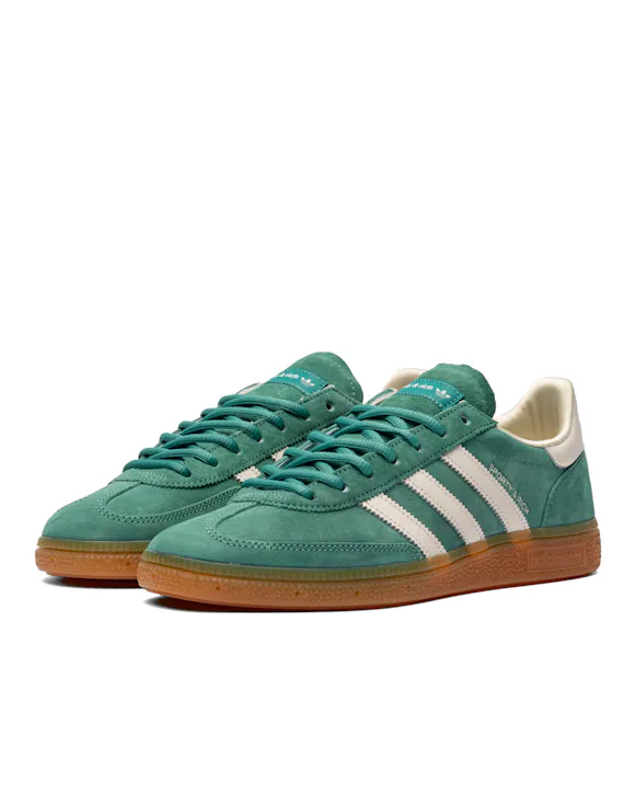 Elevated minimalism meets decades-old heritage in these Adidas Handball Spezial shoes, made in collaboration with style curators Sporty & Rich. With a vintage-inspired feel, they feature a smooth leather upper, rubber outsole, and textile lining for a retro aesthetic that's simple and sophisticated. Wear them for any occasion — they're just that versatile.